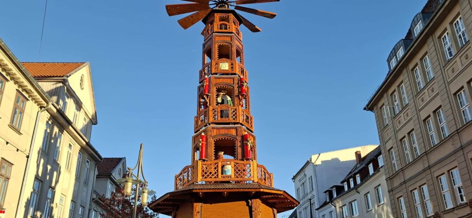 Die mehrstöckige Weihnachtspyramide in der Gudesstraße hat sich längst zu einem der zentralen Treffpunkte des Uelzener Weihnachtszaubers entwickelt. Auf mehreren Ebenen werden Heißgetränke ausgeschenkt, an den Buden gibt es Bratwurst, Crêpes und Süßwaren. Nach Einbruch der Dunkelheit sorgt die aufwendig illuminierte Holzkonstruktion für eine stimmungsvolle Kulisse – entsprechend groß ist der Andrang.